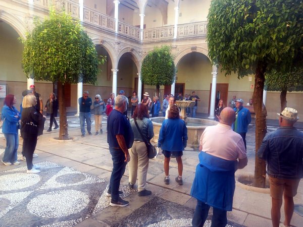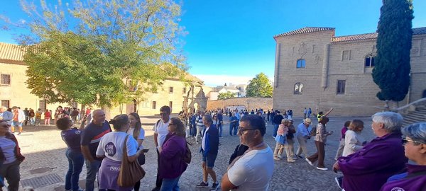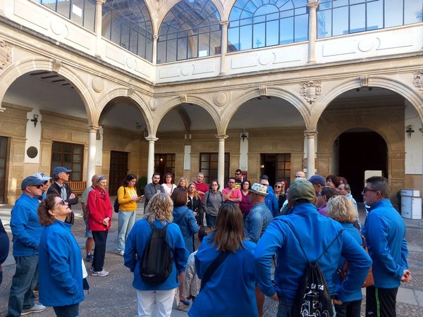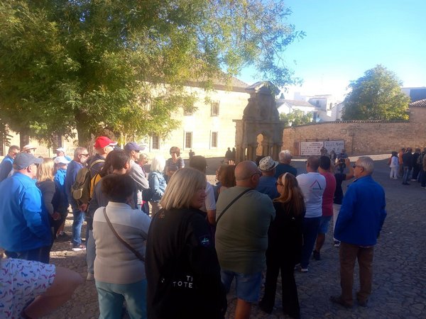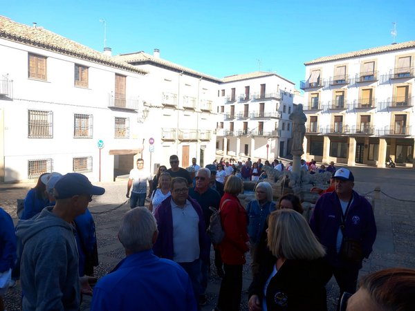Uno de los grupos junto a la fuente de Himilce, esperando para empezar la visita cultural por baeza.