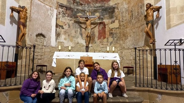 Los peques en el altar mayor de la iglesia de San Francisco.