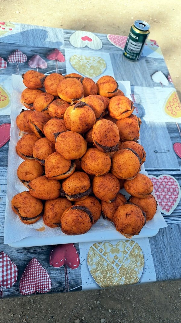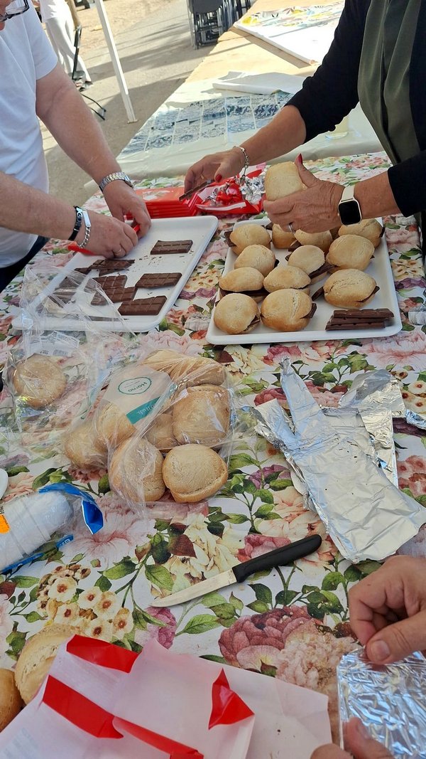 Las chicas esperando su turno para retirar su taza de caldito calentito.