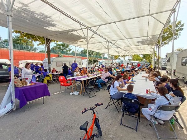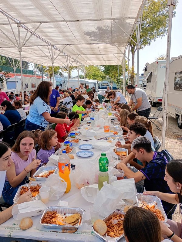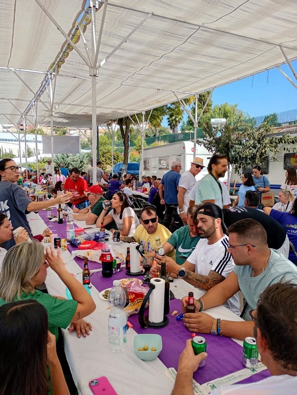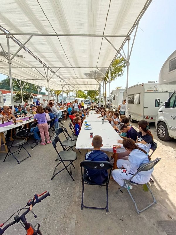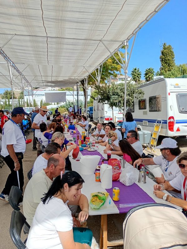 Foto de familia de la mayoría de los asistentes a la acampada, con la concejal de hacienda Dña Ginesa López y el concejal de agricultura, D.Abtonio Javier Perales.